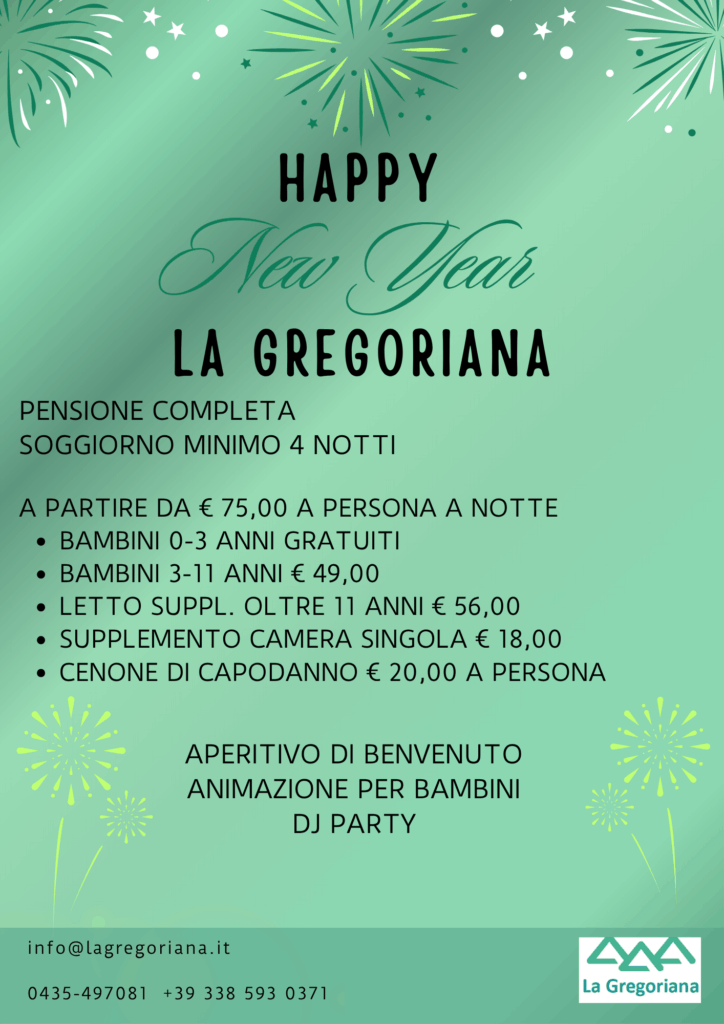 Ti aspettiamo per festeggiare assieme il capodanno a La Gregoriana, ci trovi ad Auronzo di Cadore (BL) – info@lagregoriana.com